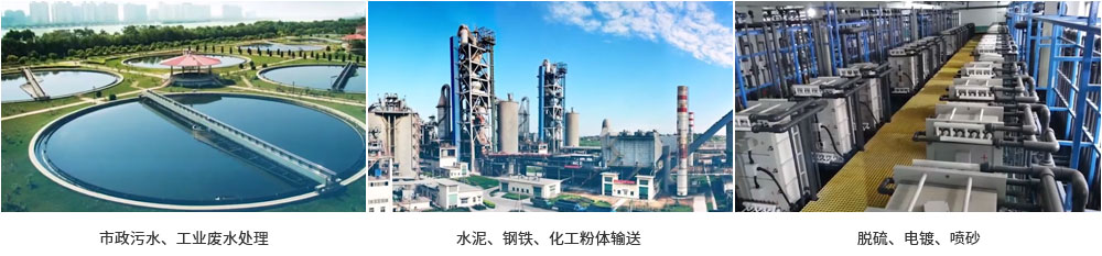產品應用于污水處理、水泥、鋼鐵、化工粉體運輸、脫硫、電鍍、噴砂、電子、食品、醫藥、造紙、紡織、印染等行業領域,致力于向全球客戶提供空氣動力的節能裝備和系統解決方案。